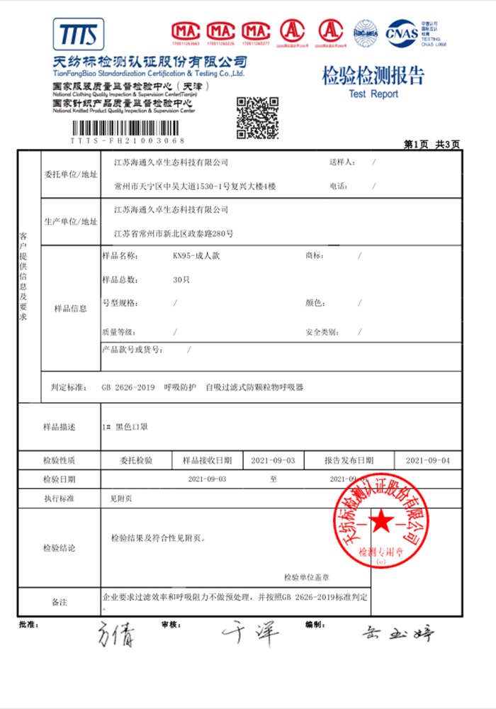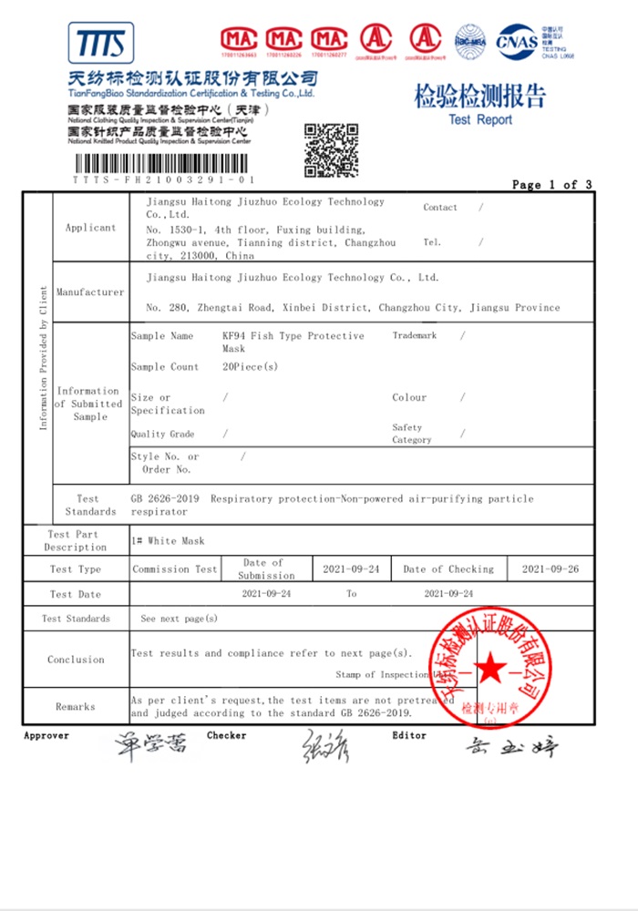 KF94款 GB 2626-2019檢驗(yàn)報(bào)告(中文版)