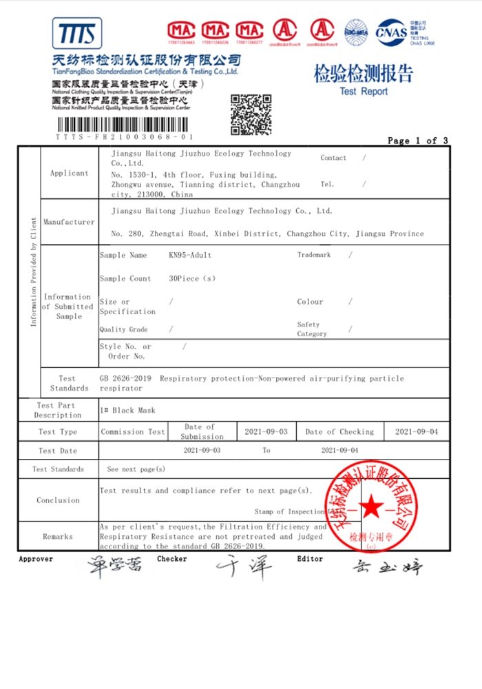 KF94款 GB 2626-2019檢驗(yàn)報(bào)告(英文版)