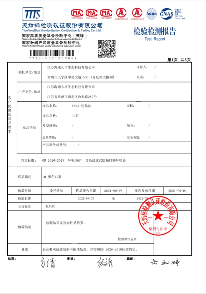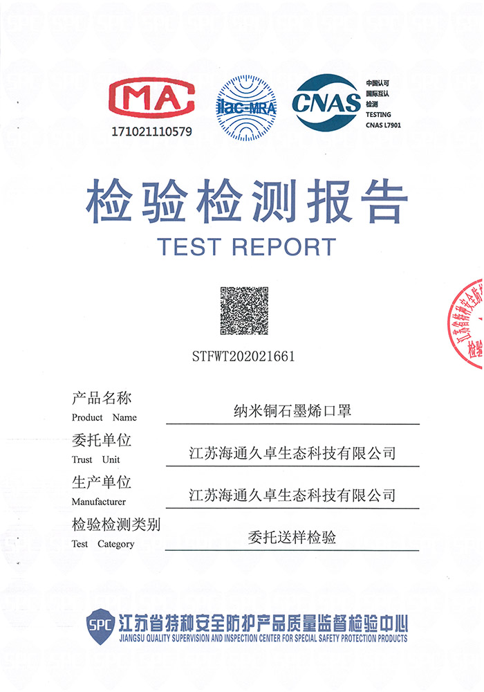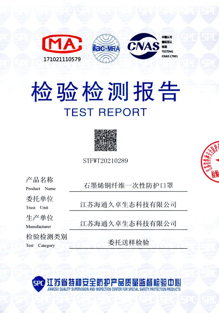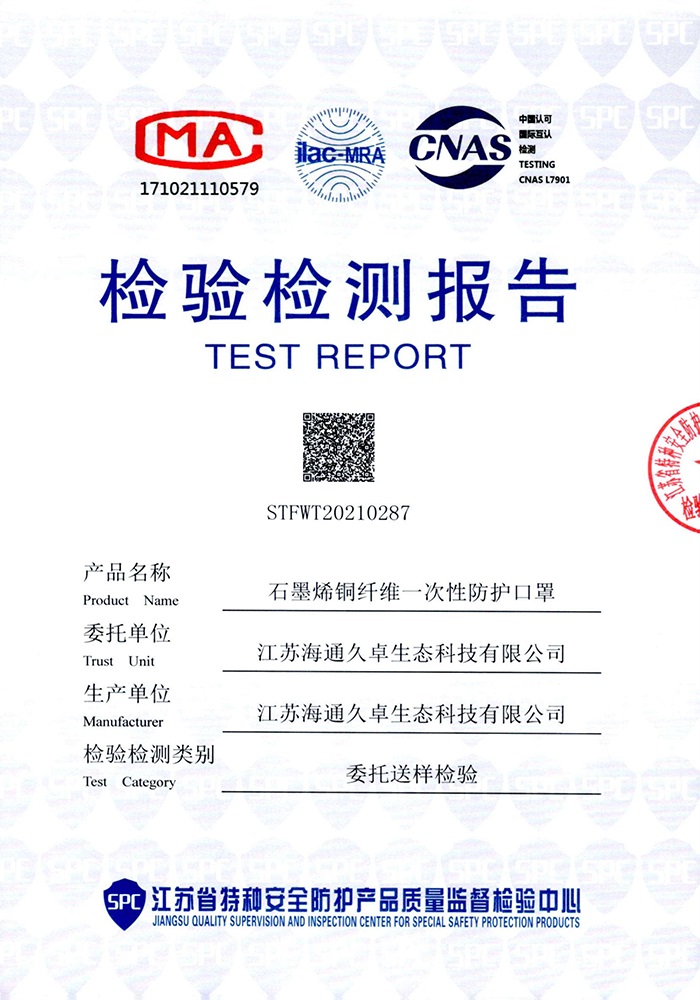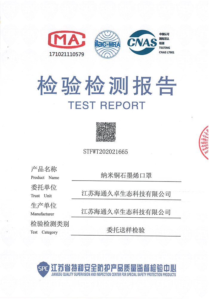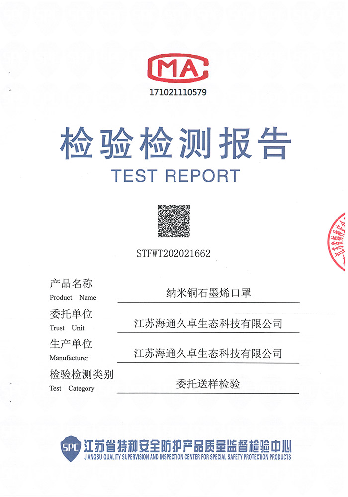 GB 2626-2019檢測(cè)報(bào)告- 納米銅石墨烯口罩(折疊型)