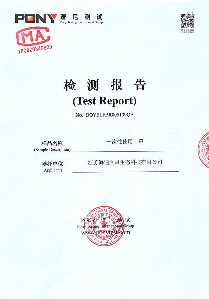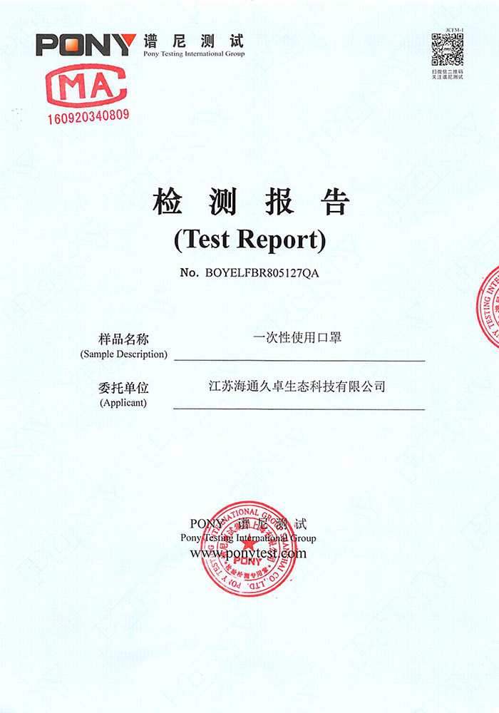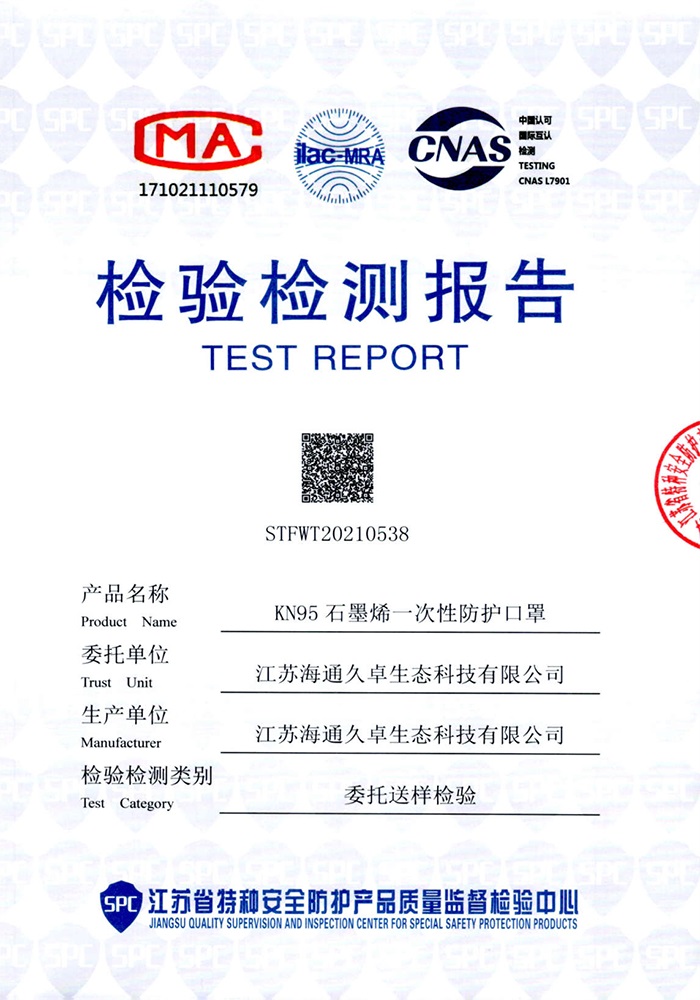 GB32610-2016檢測(cè)報(bào)告-石墨烯一次性防護(hù)口罩(平面成人型)