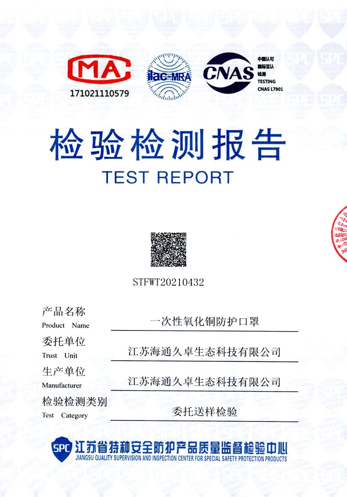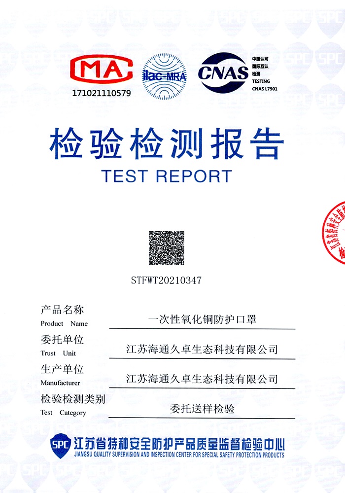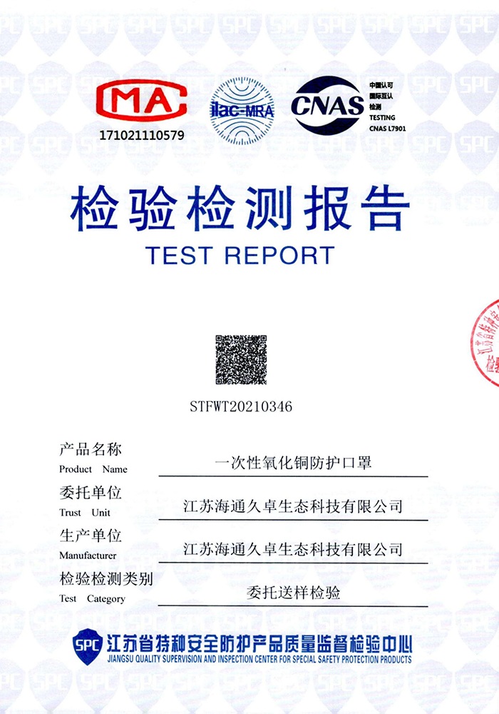 GB32610-2016檢測(cè)報(bào)告-一次性氧化銅防護(hù)口罩(平面成人款)
